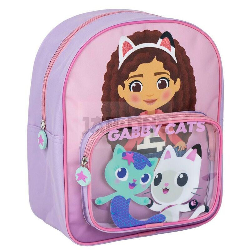 Przeuroczy plecak, który spodoba się każdej dziewczynce! Głównym motywem jest oczywiście Gabi z jej przyjaciółmi. Plecaczek jest jasnoróżowego koloru, ma dwie kieszonki oraz nadruk uśmiechniętej Gabi. Jedna z nich jest przezroczysta i posiada napis: "Gabby Cats". Kieszenie zamykają się na zamek błyskawiczny, a szelki posiadają regulację, by móc dopasować ich wielkość do gabarytów dziecka. Wymiary plecaka wynoszą: 25 cm x 30 cm x 8 cm.